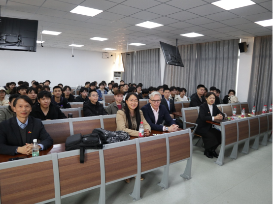 10月23日下午,为让合作成果惠及更多学子,德方代表NilsRomanAlbrecht先生与马晋妍女士分两场为电信学院大一、大三学生举办项目说明会,李泽平老师主持会议。宣讲中,德方代表以“案例+数据”的形式,生动解读中德合作项目的三大优势:一是“双学位+国际化课程”,学生可同时获得两校学位,课程体系融合德国应用科技大学“实践导向”特色;二是“多元化交流渠道”,涵盖短期游学、semesterabroad(海外学期)、企业实习等;三是“广阔就业前景”,依托德中产业资源,毕业生在智能制造、电力工程等领域具备竞争力。