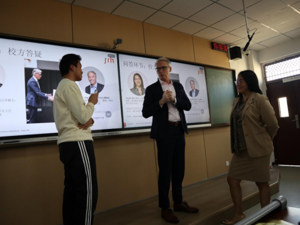 互动环节中,学生围绕“出国申请流程”“语言成绩要求”“海外生活适应”等问题踊跃提问,德方代表逐一耐心解答。现场思想碰撞频繁,不少学生表示“对国际化发展有了更清晰的规划”,进一步激发了参与国际交流、打造全球化职业生涯的热情。