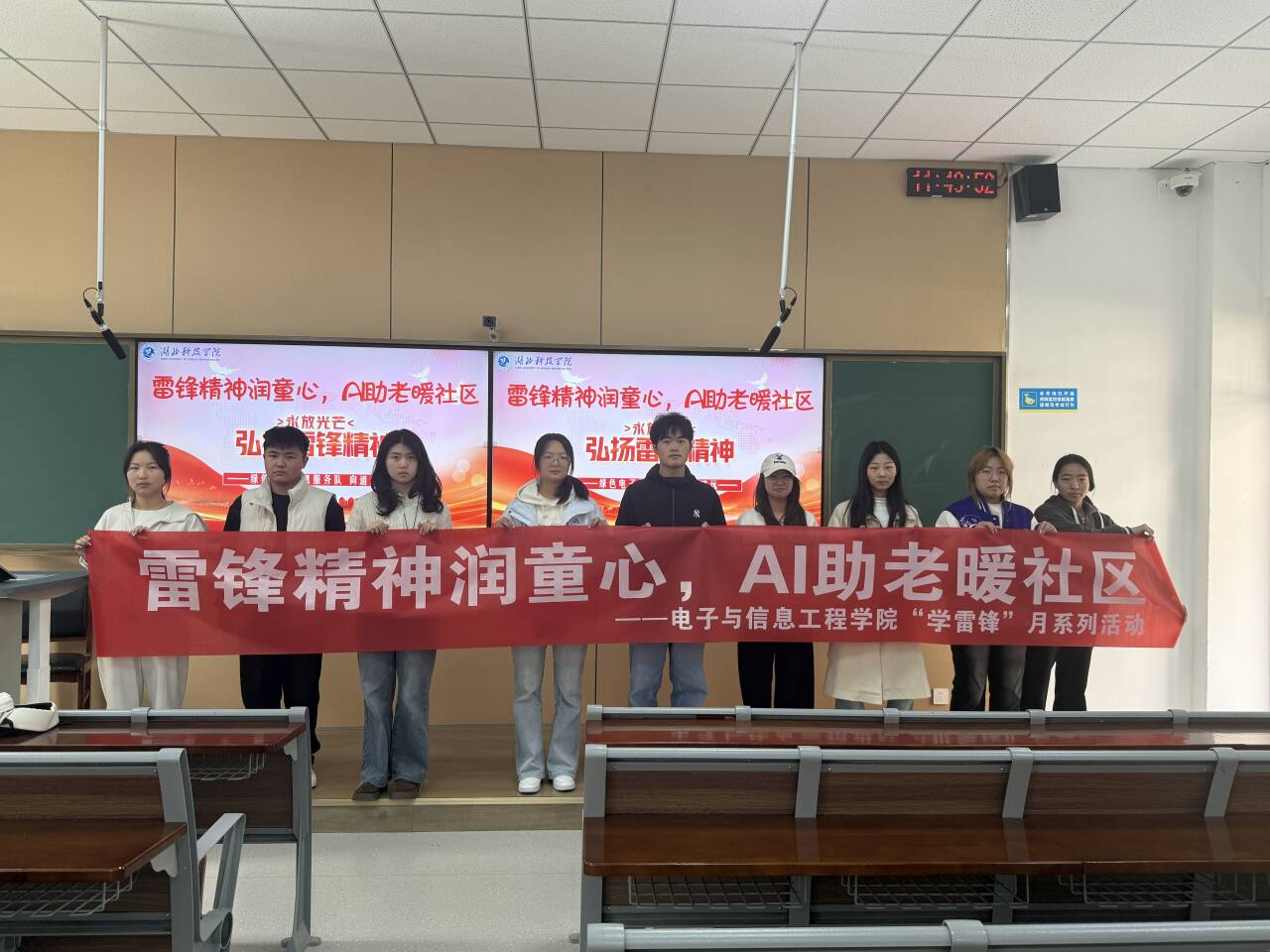 本次活动由湖北科技学院青年志愿者协会主办,电子与电气工程学院团委学生会、“绿色电子”志愿服务队、AI智能机器人协会、电子协会联合承办,立足校园主阵地、深耕社区大课堂,将电子信息专业特色、AI前沿技术与志愿服务深度融合,于3月14日至21日期间,先后开展了义务家电维修、AI反诈宣讲、AI助老实践、红色光影观影、主题团日活动等五大类特色实践,覆盖湖北科技学院在校师生与桂花路社区、岔路口社区、金叶社区广大居民,以多元形式让雷锋精神在新时代焕发新的生机与活力,用青年学子的匠心与智行,把温暖与服务送到群众身边。