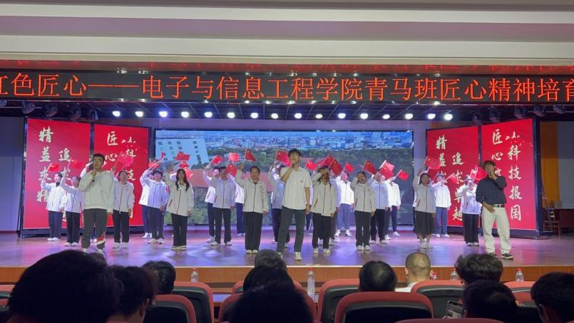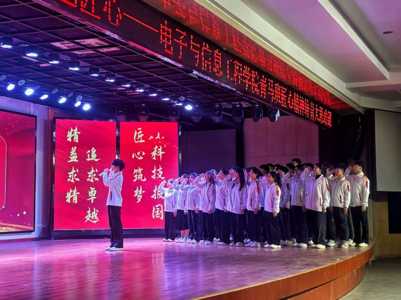 学院青马班班长李奇带领全体学员和理工科新生庄严宣誓,表达了他们将脚踏实地、好学不倦,主动践行工匠精神,争做新工科人才的决心和信念。活动的最后,全场师生一起合唱2025年五一国际劳动节“心连心”特别节目中的歌曲《匠心》,一起致敬劳动者,弘扬劳模精神、劳动精神、工匠精神,唱响劳动光荣、奋斗伟大的主旋律。