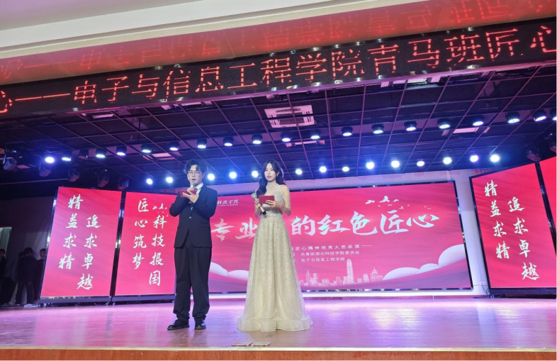 传承红色血脉,培育匠心精神。电子信息工程学院于2025年10月24日下午在图书馆学术报告厅举办了一场别开生面的匠心精神培育大思政课活动。本次活动以学生为主体,采用翻转课堂的形式,以青马班“专业里的红色匠心”视频剪辑比赛中脱颖而出的优秀学员为主讲人,面向全体学生开展以匠心精神为主题的教育宣讲。学院院长陈志远、学工办辅导员、班主任、专业教师及2025级全体新生参加活动。
