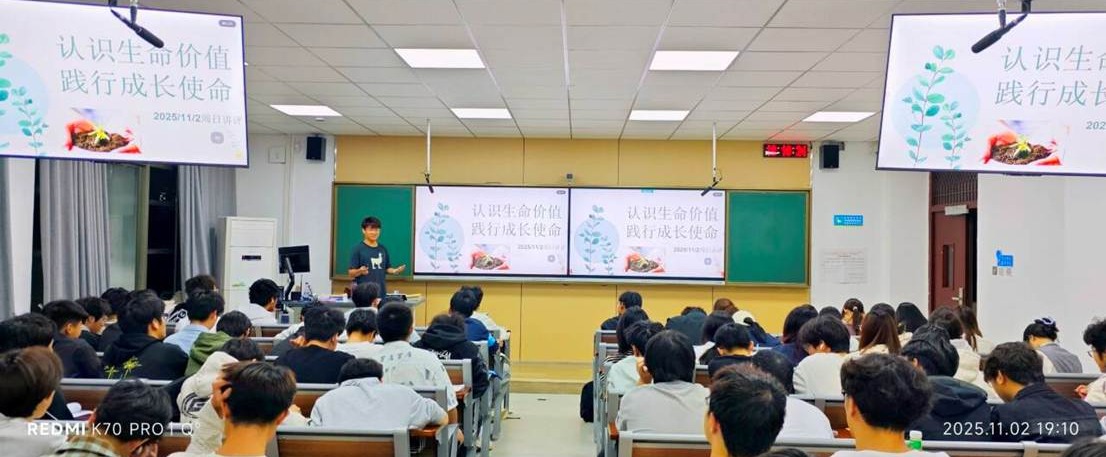 班会中,辅导员结合学院内真实场景展开分享:提及学子间自发形成的学业互助模式,在彼此帮扶中攻克学习难关;也谈到有同学在遇到心理困惑时,通过与老师沟通、参与学院暖心活动,逐步调整状态、重拾活力。这些贴近校园的事例,让同学们直观感受到生命联结的意义与成长的力量,更深刻理解 “自我成长、关怀他人、社会担当” 的生命内涵。